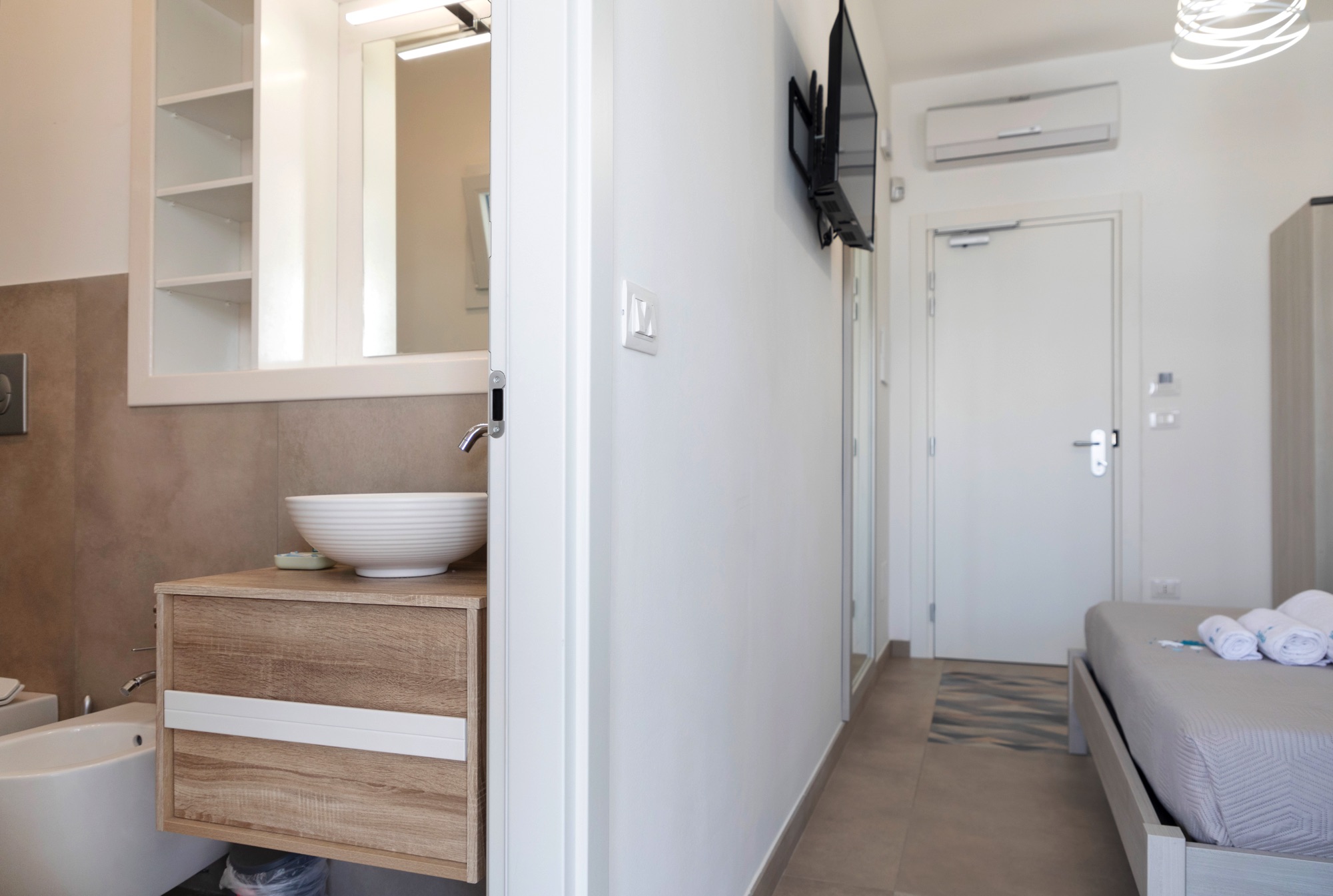 La camera è attrezzata per un confortevolissimo soggiorno all’insegna di servizi di primo livello, tecnologie d’avanguardia e lo charme di una struttura modernissima ed elegante. E poi, il mare, a pochi metri dalla stanza, che sussurra alla finestra e culla le notti.