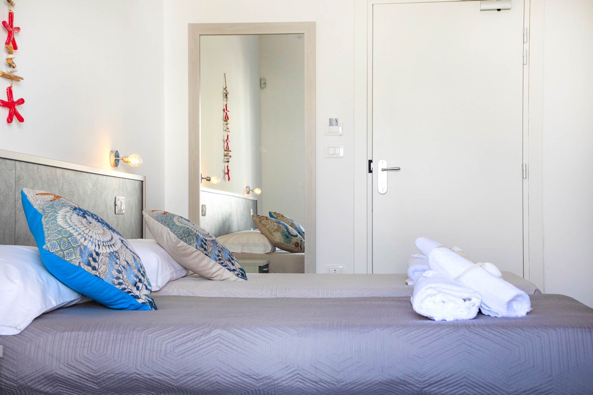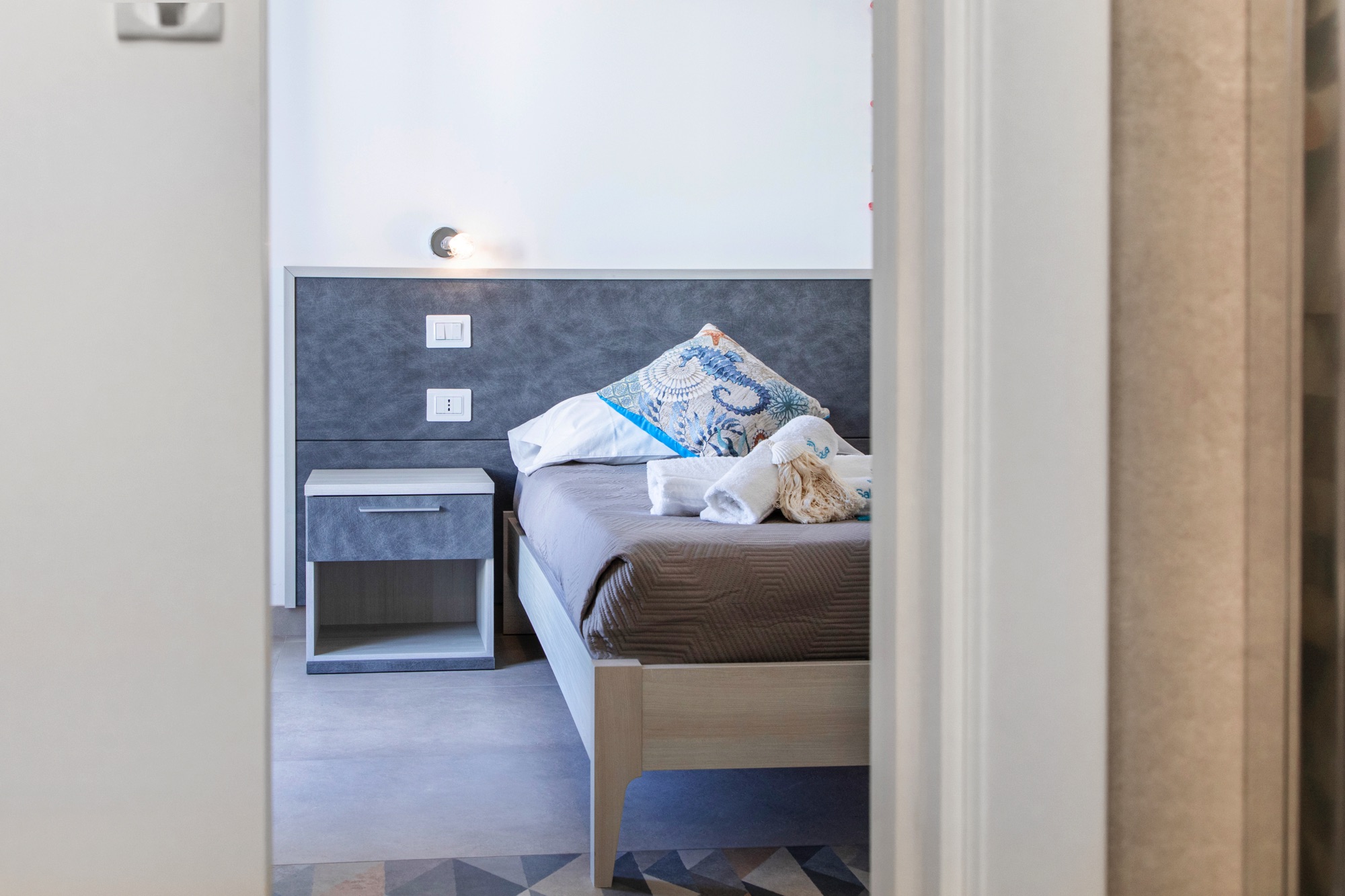 La camera Azzurro è un perimetro felice in cui trascorrere ore di gioia, tranquillità e riposo, l’atmosfera ideale per vivere un soggiorno in una località unica nel suo genere, dove l’azzurro del cielo e quello del mare si baciano lungo l’orizzonte.